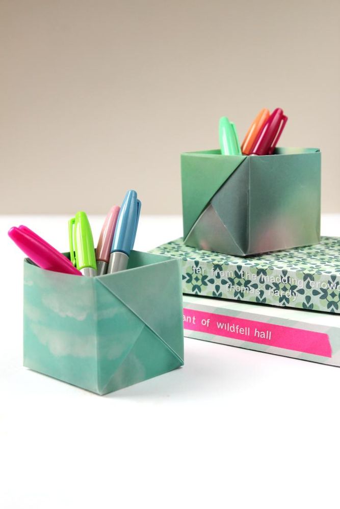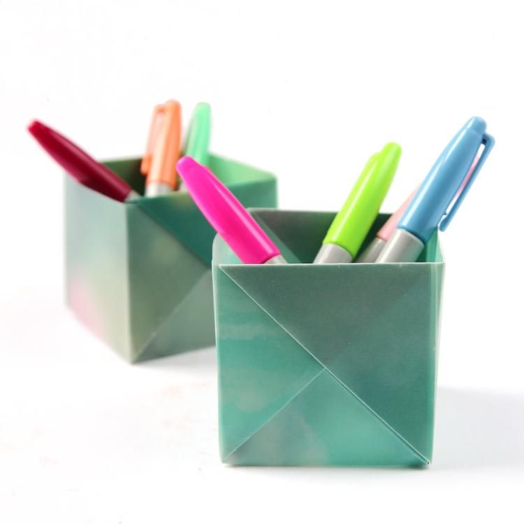 Если обычные стаканы для хранения принадлежностей поднадоели и хочется чего-нибудь экологически чистого и рукотворного — самое время сделать органайзер своими руками в технике оригами. Ваш стол будет однозначно выглядеть более ярким и творческим, когда на нем появится органайзер для хранения ручек и карандашей из цветной бумаги. В этом мастер-классе мы расскажем, как сделать стойку для художественных и письменных принадлежностей самостоятельно.