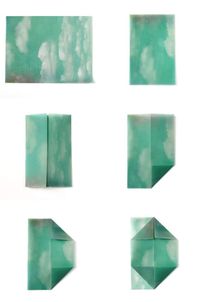 Переверните заготовку разогнутыми уголками вниз, так чтобы по форме она напоминала домик.