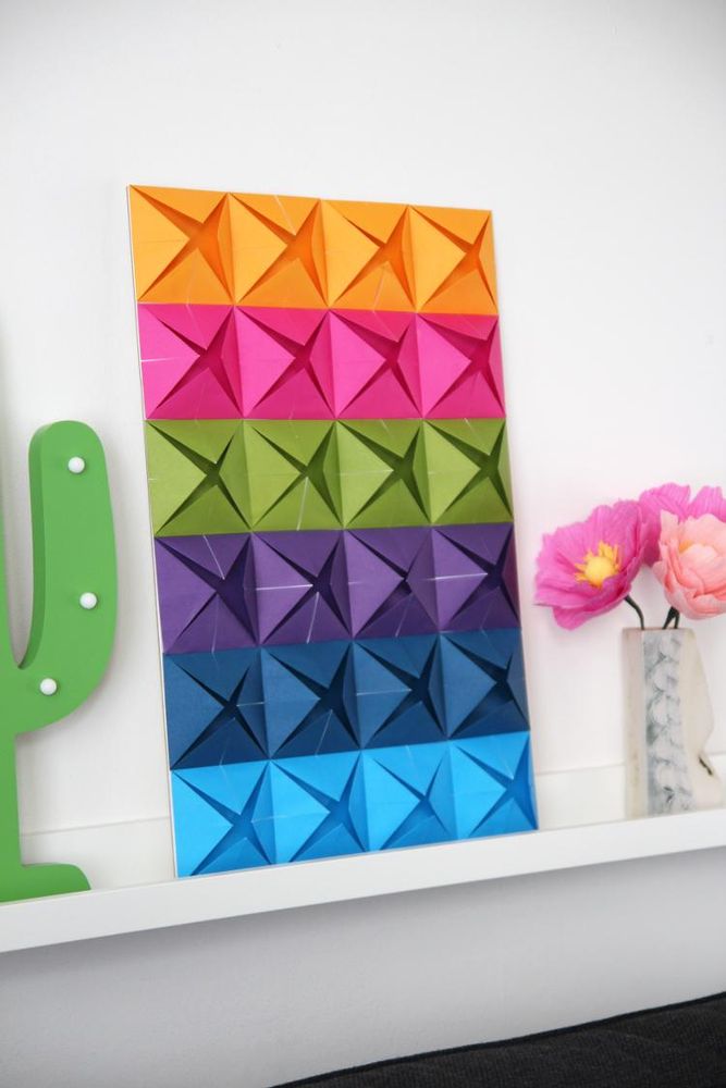 К бумажным фигуркам-зверюшкам все привыкли. А как вам идея сделать украшение на стену в технике оригами? Уверены, такое панно будет самым оригинальным элементом в вашем интерьере. Затрат минимум, а результат выше всяких похвал. Всего лишь несколько листов цветной бумаги и немного времени. Попробуйте!