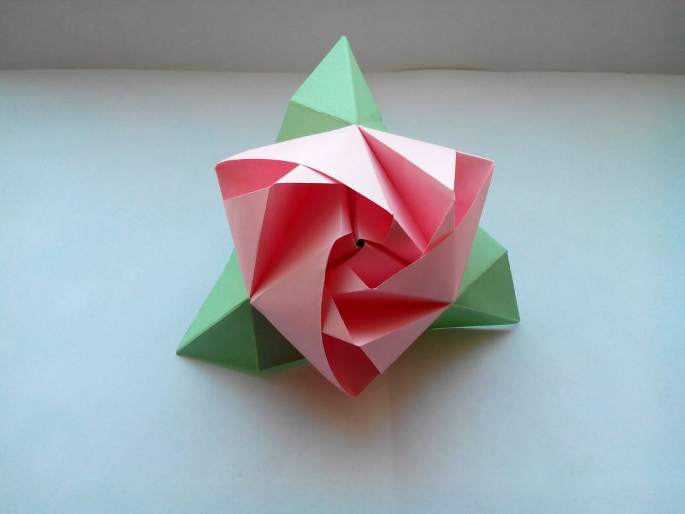 - Вместо этого цветка можно сделать другой цветок, например астру. Для этого согните углы от самых их вершин.