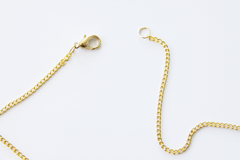 Разделите цепочку на две части и добавьте цепи по обе стороны ожерелья.