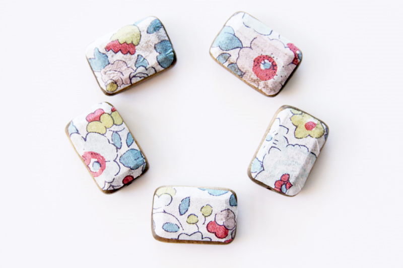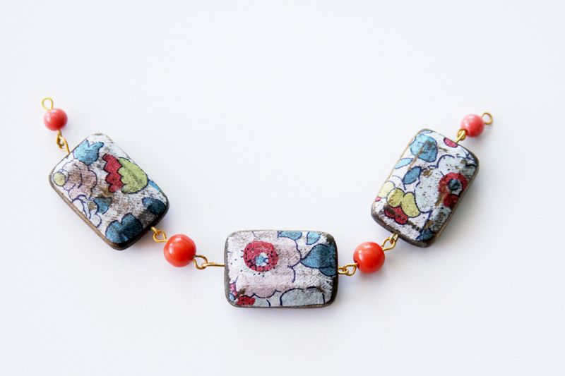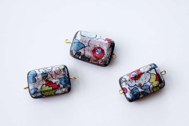 По желанию, когда клей хорошо высохнет, можете слегка потереть наждачной бумагой края и углы, чтобы придать бусинам более изношенный вид. Помните, что салфетка очень нежная не переусердствуйте. В завершение зафиксируете еще одним слоем клея. После того, как клей высохнет оденьте бусины на штифт (пины) и сделайте петлю, используя круглогубцы.