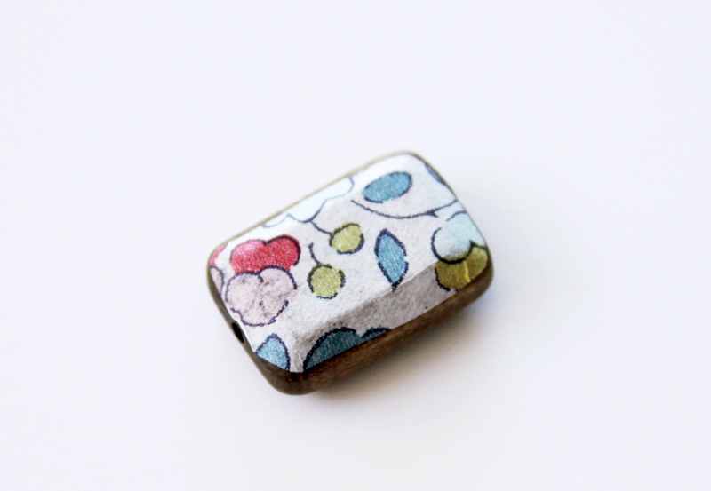 Приложите салфетку к деревянной бусине, кистью нанесите в центр немного клея и разглаживая от центра к краям приклейте салфетку.