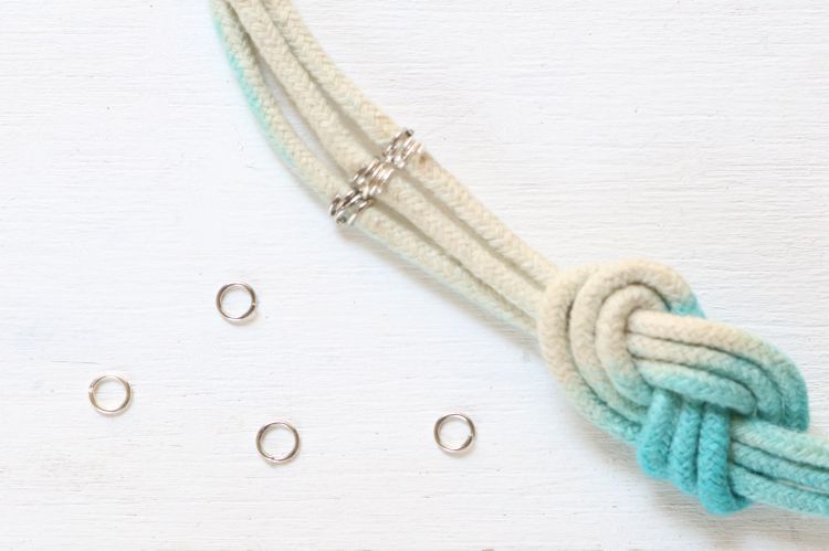 9. Вы можете добавить три кольца на каждую прядь, чтобы получилось больше деталей. Используйте плоскогубцы, чтобы закрепить каждое кольцо. Также подумайте о бусах, и как мило они будут выглядеть на этом ожерелье!