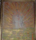 Чтобы сделать красивый фон, разрисуйте тканевый лоскут акрилом (можно использовать технику батик), после чего закрепите его на ДВП-основе.