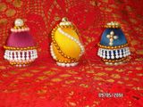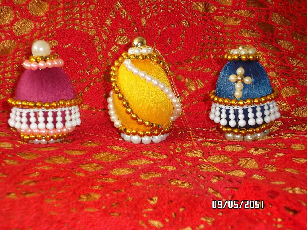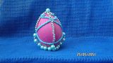 Яйцо,размером с куриное из папье-маше,обтянутое цветной ниткой,сверху украшенное фурнитурой,из бисера и бус.