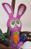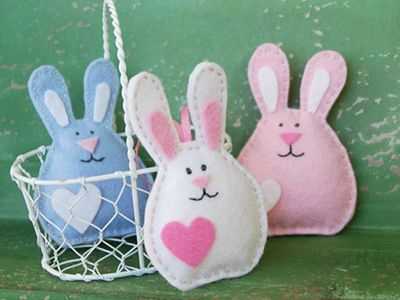 Наполнитель нужен нам для части деталей: выпуклыми должны быть лапки и ушки зайчика, туловище можно оставить плоским. Впрочем, никто не мешает вам экспериментировать, главное - помните, для набивки нужно оставить отверстие. А Уложить наполнитель можно с помощью толстой иглы. Сшейте все детали - и пасхальный зайчик готов!
