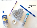 5. Нанесите клей на поверхность сердца посыпьте блестками, лишние стряхните, дайте высохнуть. Повторить с обратной стороны. После того, как клей высохнет, промойте сердце в теплой воде, чтобы убрать все лишние блестки. Дайте высохнуть.