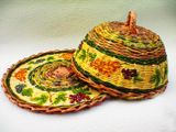 Покройте корзинку из бумажных трубочек прозрачным лаком.