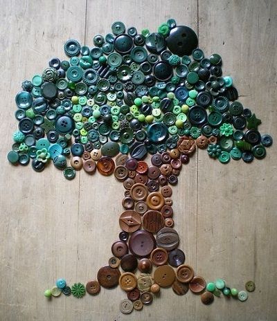 Навестите любимых бабушек в которых скорее всего есть много старых пуговиц, из них выходит чудный коллаж: