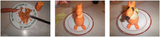 Полученная шишка опускается в ледяную воду на 15 минут. В результате шишка раскрывается и с нее сходят мельчайшие крошки.