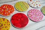 - Вырежьте круги из ткани, по размеру чуть меньше чем диск, чтобы создать окантовку по краю.
