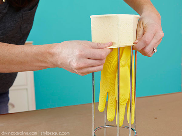 Надоела старая шкатулка для ювелирных украшений? Добавьте вашей спальне роскоши с этой очаровательной подставкой для колец. Используя резиновую перчатку и гипс, вы можете самостоятельно создать подставку и хранить ваши кольца и ожерелья более организованно, также такой способ хранения предотвратит от спутывания и лишних поисков.