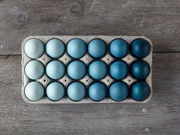 Если у вас получилось оригинально покрасить яйца, нарядно смотреться они будут даже в самой обычной картонной коробке. Удалите крышку, заполните все ячейки и поставьте на праздничный стол. Дополнительно украсить коробку можно свежей зеленой травой, положив на дно каждой ячейки небольшой пучок.