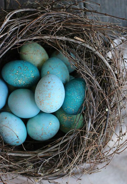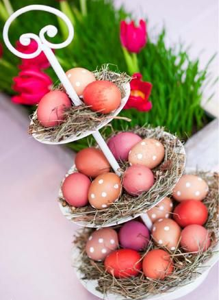 Если у вас нет подобных этажерок, просто сформируйте гнездо из травы или веток. Выложить его можно на обычной тарелке.
