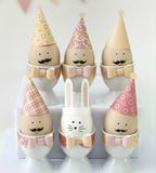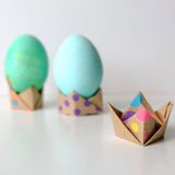 Хотите привлечь к праздничной подготовке детей? Предложите им вместе украсить простые подставки для яиц всмятку. Сделайте ленточки и банты из бумаги, а также ушки пасхального кролика и колпачки. Предложите малышу нарисовать лица. Отличная идея для детского стола на Пасху!
