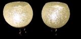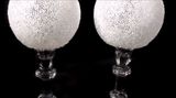 Переверните обклеенный шар, нанесите клей на края хрустального подсвечника и приложите по центру стеклянного шара. По вращайте шар, чтобы убедиться, что ножка расположена строго по центру. Когда все хорошо отцентровано, прижмите ножку и положите небольшой грузик сверху.