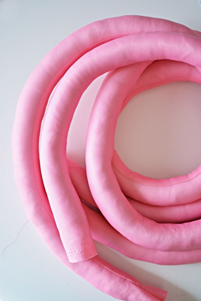 Для этого Вам не пригодится дорогое оборудование. Даже если вы в шитье новичок, вы справитесь с этим, так как чтобы сделать такую подушку не требуется каких-либо специальных навыков. Вы должны попробовать сделать узел подушку, потому что это легко и бюджетно! Зато выглядит потрясающе! Вам потребуются некоторые основные вещи, такие как: ткань на ваш выбор, наполнитель для подушки, картонная трубка, швейная машина. Смотрите аналогичный проект, как сделать игрушку https://abbigli.ru/blog/igrush... На фотографиях ниже показан весь процесс. Это так легко и быстро. Вы сделаете свои собственные узловые подушки в кротчайшее время! Для того, чтобы начать этот проект вам нужно вырезать и шить (2 полосы) 15 см х 1 м из трикотажа. После того, как сшили, выверните ткань и наполните наполнителем используя рулон от бумажных полотенец или фольги.