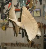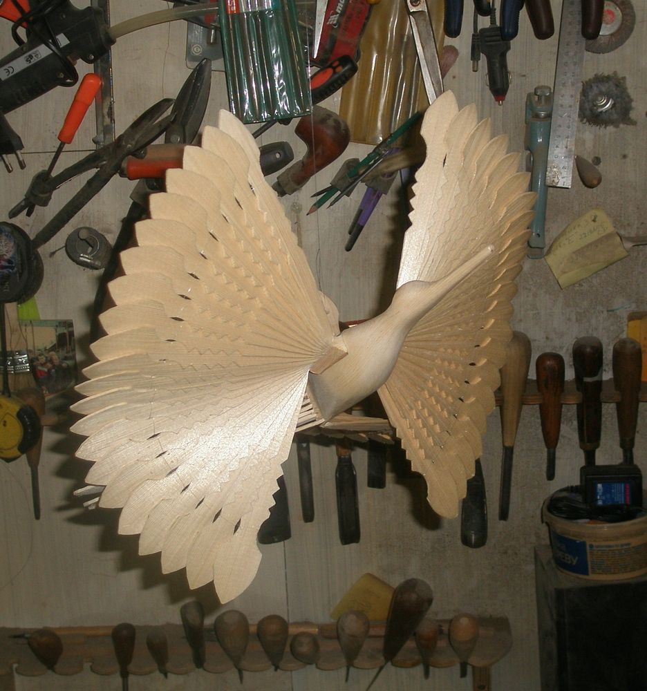 Щепная "птица счастья" по приданию приносит счастье в дом и оберегает домашний очаг. В старину птицу вешали над люлькой младенца, от потока теплого воздуха птица начинала кружиться, тем самым привлекая внимание малыша.