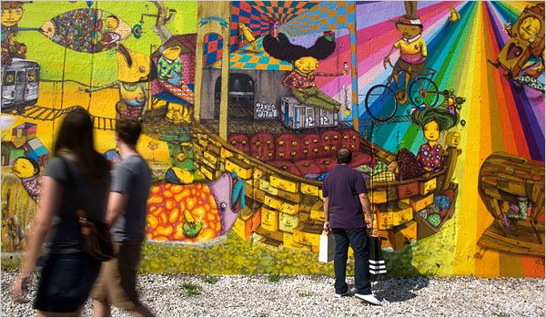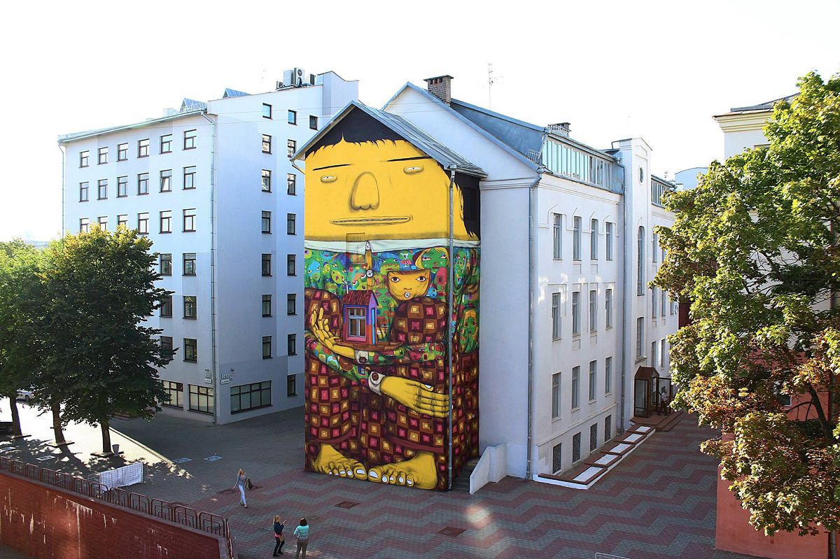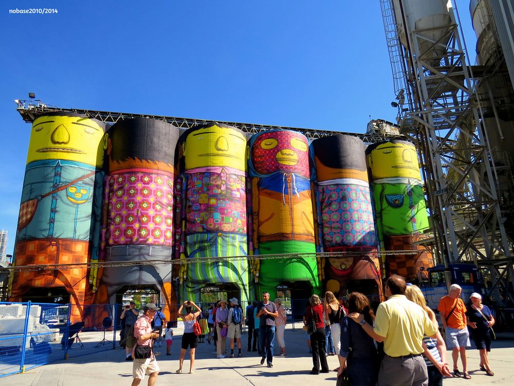 Братья начали рисовать граффити в Сан-Паулу, как подростки, более 10 лет работающие на городских улицах. Сегодня они провели многочисленные персональные и групповые выставки в музеях и галереях в ряде стран, таких как Куба, Чили, США, Италия, Испания, Германия, Литва и Япония. На огромных деревянных панелях, долговязые желтые фигуры, одетые в причудливые узоры и танцующие брейкданс... Для того, чтобы понять работы Os Gêmeos, надо позволить воображению заменить рациональный ум. Вы должны в первую очередь чувствовать, а потом - пытаться понять.