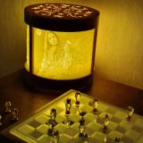 Данный светильник цилиндрической формы имеет размеры: диаметр -180 мм., высота – 170 мм , содержит 3 изображения размером 114*160мм. LED лампа имеет 3 режима яркости.