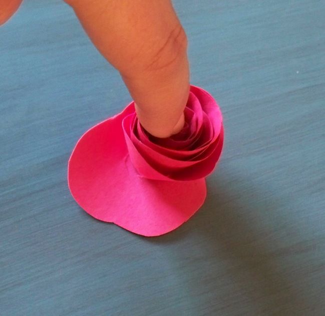 3. Придерживая одной рукой цветок у основания, расширяйте пальцем скрученную полоску, до тех пор, пока роза не приобретет желаемую форму.