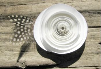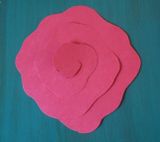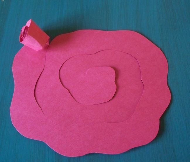 1. Возьмите лист бумаги и нарисуйте круг с волнистыми краями (придерживаться какого-то шаблона необязательно, просто нарисуйте фигуру свободной формы от руки). Вырежете фигуру и разрежьте ее полоской по спирали, шириной примерно 1.5 см (опять-таки точность не играет большой роли). В центре оставьте небольшой круг или овал, за который розу моно будет потом приклеять к чему-нибудь.