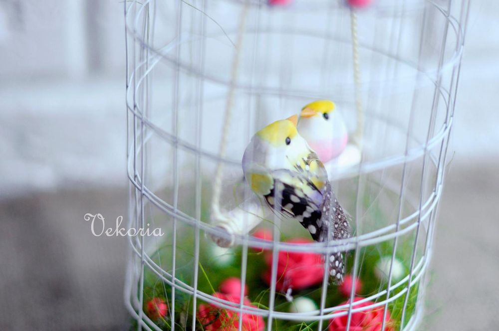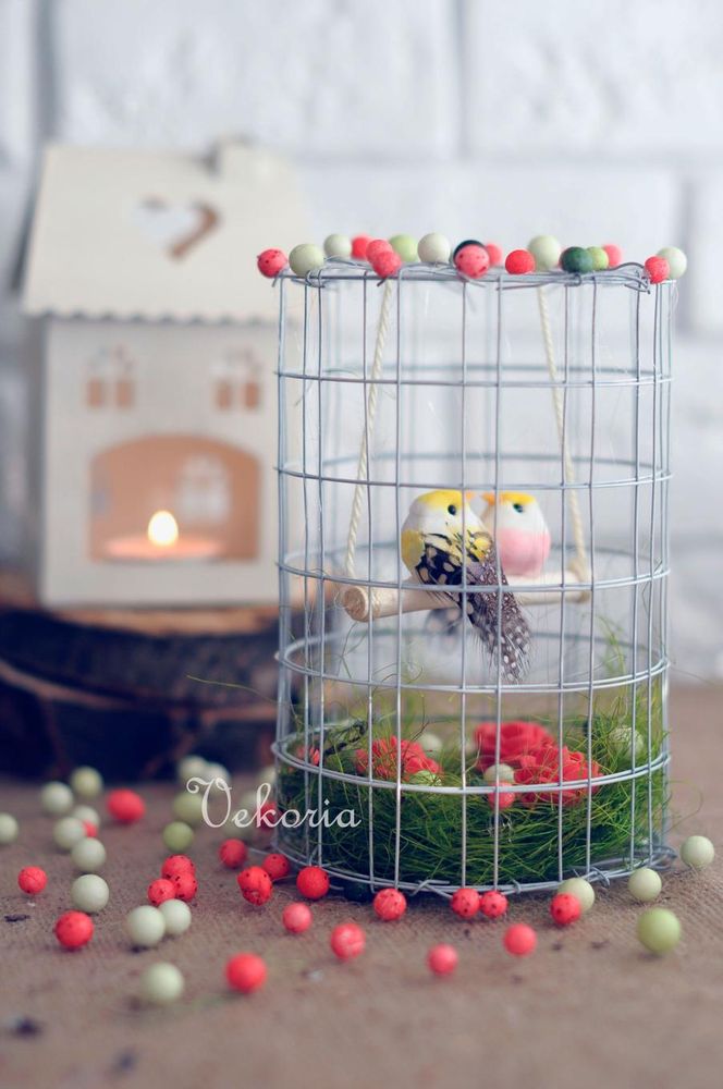 Если привязать к верхней части сетки веревочку, то такую клетку с птичками можно повесить куда угодно! Она украсит ваш дом или может стать чудесным подарком! Помните — птицы символ домашнего уюта, семьи, они приносят удачу в дом и гармонизируют пространство.