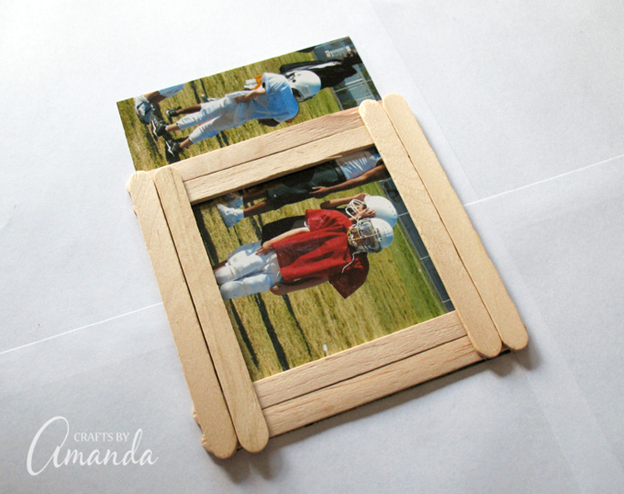 6. Переверните рамку и тыльной стороны приклейте фотографию.