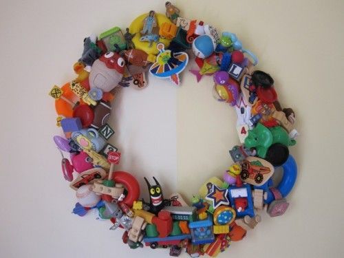 Используйте клеевой пистолет, чтобы приклеить игрушки к деревянной рамке. Располагайте предметы красиво и плотно, сначала приклеивайте игрушки большего размера, затем заполняйте пустоты более мелкого. Сразу выбирайте наиболее подходящее расположение, прежде чем приклеить, следите за тем, красиво ли размещены элементы и насколько хорошо закрепились, иначе позже вы будете разочарованы результатом, когда некоторые элементы начнут отваливаться.