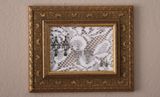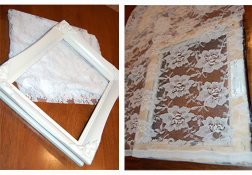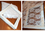 Замеряйте ширину и высоту рамки и вырежьте нужный размер кружева внахлёст раме.