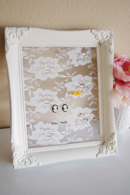Такая рамка будет эффектным аксессуаром для вашего туалетного столика или консоли и в добавок на ней прекрасно будут себя чувствовать ваши серьги. Сделанная своими руками такая рамка может стать эксклюзивным подарком вашей сестре, маме или подруге.