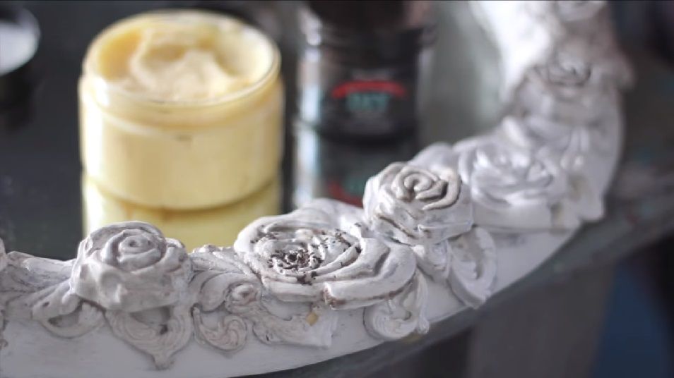 4. Тем временем покрасьте раму зеркала в выбранный вами цвет, предварительно обклейте малярной лентой края зеркала, чтобы не испачкать.