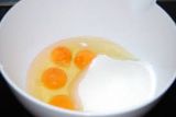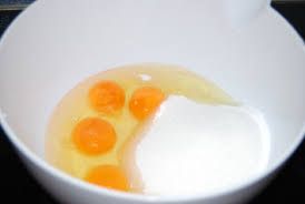 Вбейте в кастрюльку 5 яиц и добавьте два стакана сахара