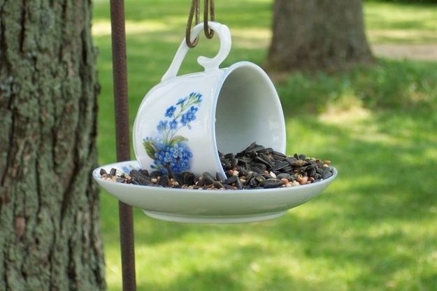 У многих найдутся чашки, чайники, которыми уже давно никто не пользуется. Эти столовые предметы вы можете перепрофилировать и изготовить изящные кормушки для птиц.