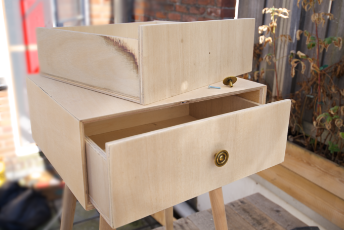 После полного высыхания конструкции приклейте заднюю часть к тумбочке.