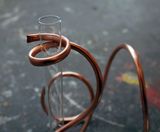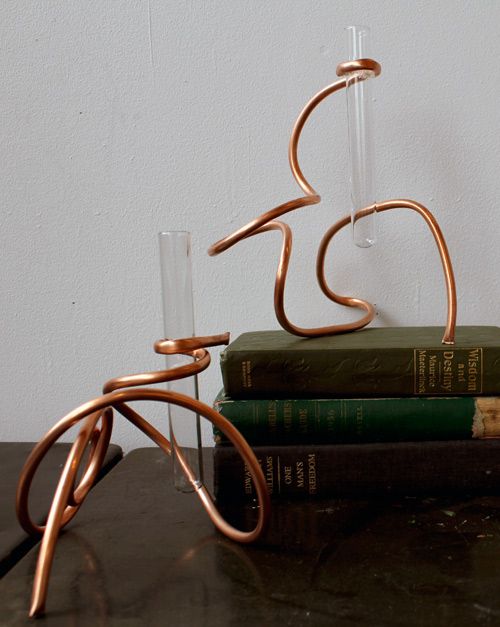 Обрежьте лишние куски проволоки, поместите стеклянные пробирки в медные зажимы, капните немного воды и поставьте туда цветы. Ваша композиция готова!