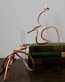 2. Начните сгибать проволоку в форме. Нет неправильного способа сделать это. Медная проволока очень легко изгибается в ваших руках. Периодически размещайте фигуру на столе, чтобы увидеть, балансирует ли она, а если нет, просто согните детали, пока это не произойдет. На самом деле не имеет значения, что делает нижний конец, но один конец катушки должен быть высоко, чтобы вы могли согнуть его, чтобы он держал вазу-пробирку.