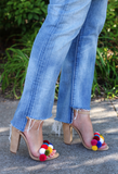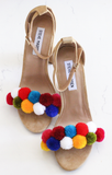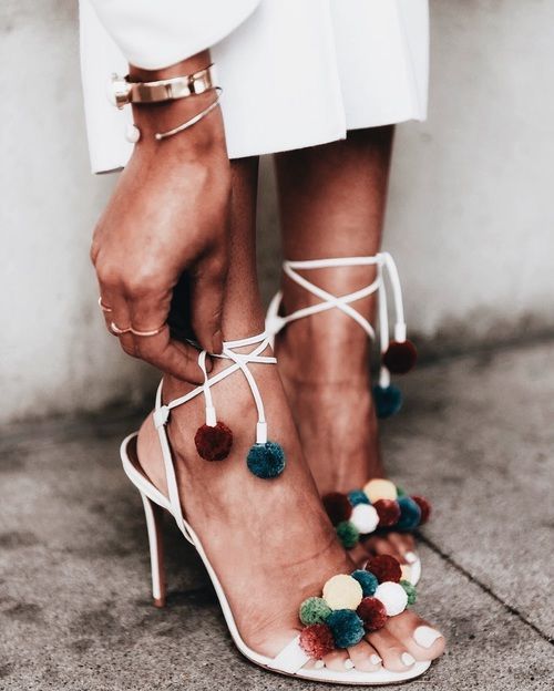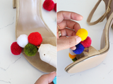 Скоро лето. А лето — это время солнца, ярких красок. Почему бы не украсить летнюю обувь разноцветными помпонами "смайлами". Яркие помпоны вы можете сделать самостоятельно или же купить готовые.