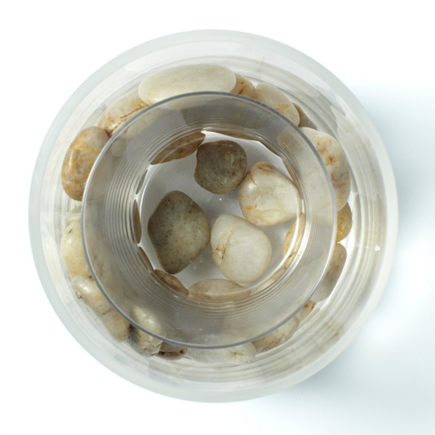 4. После того, как вы поместите меньшую вазу внутрь большей по размеру, заполните промежуток между ними гладкими камнями, галькой (доступно в строительных магазинах). Вы можете также поместить несколько камней на дно большей вазы, чтобы немного поднять меньшую вазу, если это необходимо.
