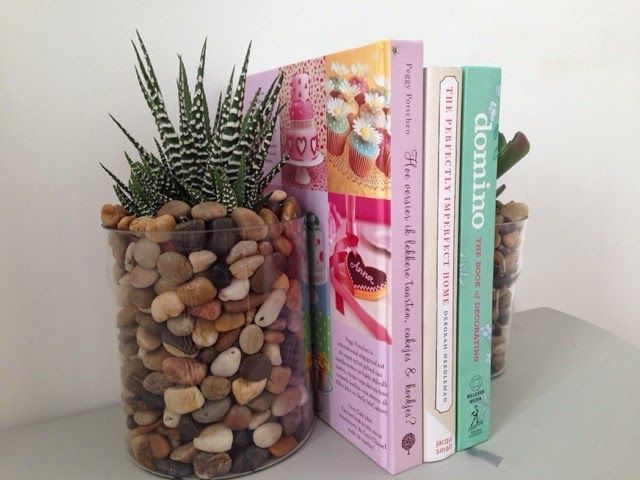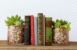 Суккуленты являются незаменимыми героями среди комнатных растений – очень милые и к тому же не прихотливые (вам нужно поливать их только один раз в неделю!). Они добавят приятную глазу зелень на полку с любой коллекцией книг, посаженные в прозрачных вазах, наполненных красивыми речными камнями.