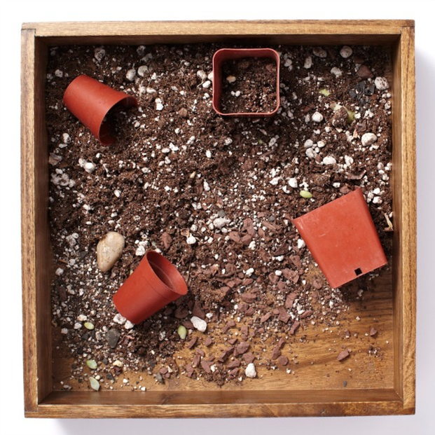 2. Возьмите старый деревянный поднос, емкость или застелите газетную бумагу, чтобы покрыть стол, прежде чем удалить суккуленты из горшков. Оставьте землю она вам еще пригодится и отложите пока в сторону.