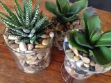 5.Посадите свои суккуленты в меньшую вазу, добавив землю для заполнения контейнера. Сверху также расположите камни, чтобы скрыть края внутренней вазы.