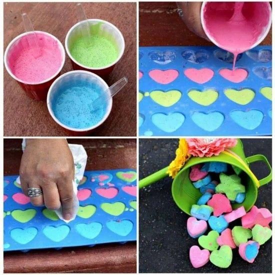 Помните, как в детстве мы обрисовывали мелками каждый кусочек асфальта во дворе, все тротуары, стены? Было весело, правда?) Можно было придумать любую историю и создать ее самому, можно было нарисовать клеточки для игры в классики..Да и вообще, раздолье для полета фантазии и креатива! Сегодня я хочу показать вам совершенно несложный и очень быстрый способ, благодаря которому вы сможете с легкостью сделать собственноручно разноцветные мелки. С ними любая игра с вашим ребенком станет ярче, веселее, изобретательнее и вы сами сможете окунуться в детство, рисуя картинки на асфальте!)