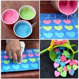 Для начала, смешайте гипс с теплой водой. Затем добавьте краску и тщательно перемешайте. Разлейте цветной гипс в формочки и снова перемешайте, чтобы вышли пузырьки воздуха. Это можно сделать иголкой, спицей и пр.. Теперь осталось лишь подождать, когда наши мелки застынут - чем крупнее формочка, тем дольше будет сохнуть мелок.
