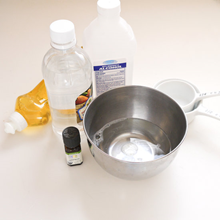 4. Смешайте вместе уксус, средство для мытья посуды, спирт и воду в небольшой миске. Вы можете добавить несколько капель эфирного масла, которое персонализирует салфетки и повысит антибактериальные свойства.
