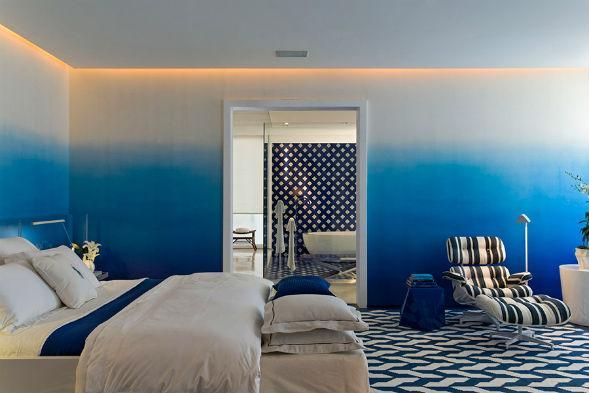 Второй фокус- оттенить цвет потолка за счет более темной окраски стен. Используйте технику омбре - все более затемняйте колер, чем ниже к полу вы опускаетесь.