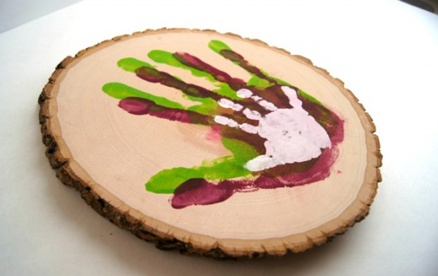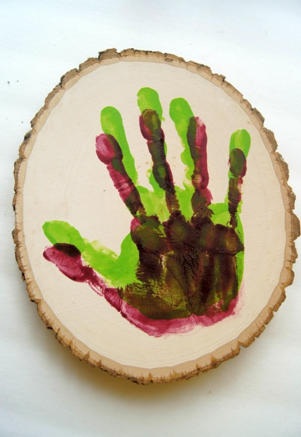 Для того, чтобы начать этот маленький проект, в первую очередь сделать должен отпечаток папа. Просто нанесите на руку краску, и придавливая другой рукой сделайте отпечаток его руки. Если вы не придавите на вершине, будет много пустых мест.