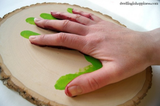 1. Сперва светлой краской сделайте фон, для этого покрасьте спил, оставляя кромку не прокрашенной. Дайте высохнуть.