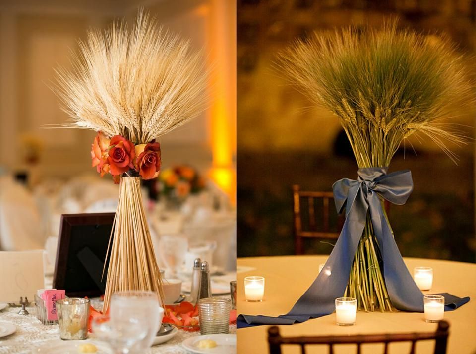 Колосья пшеницы отлично смотрятся в букетах и бутоньерках. Их можно дополнить садовыми и полевыми цветами, сухоцветами, а также ягодами шиповника или рябины.